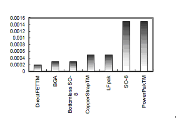 图3显示在目前使用的SMT器件中DirectFET封装提供了最优良的封装阻抗(DFPR)。