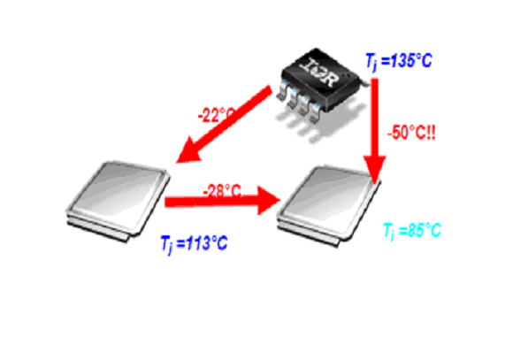 以一个每相30A的多相变换器为例,要满足这个电流,用最好的单面散热的SO8封装MOSFET,比如标准的SO-8,无底的SO-8和无铅的SO-8,每相要用五只,而双面散热的DirectFET 只需两只。比较结果元件数减少了60%。