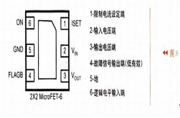 FPF2163/4/5系列是飞兆公司于2007年7月推出的输出电流可设定的多功能负载开关。该系列主要特点:输入电压范围为1.8~5.5V;可设定限制电流的范围为0.15~1.5A;输入电压低于阈值电压时,输出锁存(UVLO);有过热关闭?;ぃ豢毓囟鲜焙牡缧∮?μA;静态电流小于7.7μA;过流后输出限制电流(恒流)的响应快:中等的过流时响时间为5μS;短路时为30nS;发生欠压锁存、过热及过流故障时,输出闭锁,并有故障信号输出;开关关断时无反向电流,2×2mm2微FET-6封装。