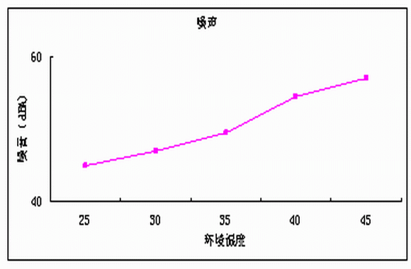 音频噪声污染主要控制方法是选用低噪音换热单元,同时机柜采用消音措施。研究表明,换热单元调速可有效的降低机柜噪音。图5是某型户外产品噪音水平与环境温度关系曲线,从曲线可看出,采用调速后,随着环境温度减小,户外柜噪音明显降低。由于夜晚时环境温度变低,因此采用该项技术的设备晚间有更低的噪音水平,非常符合实际应用环境的需要。