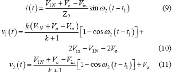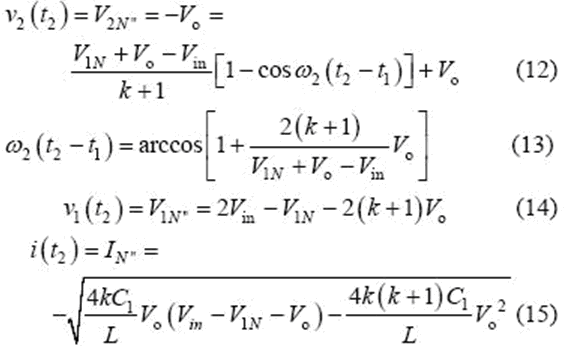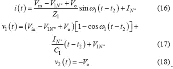 当v2(t2)= -Vo 时,该模式结束,可得到如下表达式