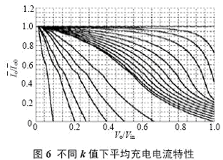 (2)计算最大Vo/Vin 下充电电流大小,Vo/Vin=0.9, k=0.17,查图6 可得,此时充电电流为0.44A。(3)调整谐振电容,选择C1=1.55µF,则k=0.1,可算得最大Vo/Vin 下充电电流为1.09A,满足要求。由此可算得谐振电感L=14.7µH,考虑线路压降和确保电路工作在软开关状态,适当减小谐振电感,取L=13.2µH(含变压器漏感)。