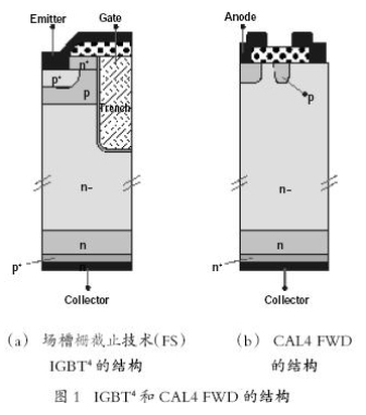 图1(a)显示了基于英飞凌沟槽栅场截止(FS)IGBT4 技术和赛米控CAL4 续流二极管的新一代芯片的基本结构。