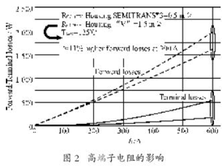 ??榈亩俗拥缱瓒缘缏返墓ぷ餍实挠跋烊缤?所示。在图2所示的例子中,举例的开关导通损耗比SEMITRANS高11%。这相当于一个每相绝对值约90 W,三相共270 W的功率变频器。