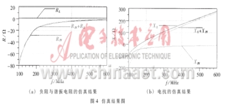 从图4(a)的仿真结果可以看出,在200MHz附近,RIN+RL<0,所以满足起振条件,由于RIN的负阻比较大,所以提供交流能量的能力比较强,故振荡的幅度会比较大,这一点在后面的仿真和测试中可以得到证实。从图4(b)可以看出,当f为200MHz左右时,XIN+XL=0,从而满足相位平衡条件,它决定了振荡的频率。