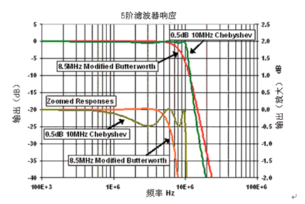 使用有源滤波器时要牢记,滤波器的Q越高,放大器的带宽就越高。如果使用贝塞尔或巴特沃思滤波器乃至更高阶的版本,我们要把各级的Q保持相对较低。设计支持椭圆或契比雪夫响应的滤波器,其Q值较高,需要较高带宽的放大器才能适当实施。否则,放大器对滤波器就会造成影响,从而改变我们所需的响应。我们可通过修改组件值来实现上述目标,不过放大器之间的差异会因此变得更大。