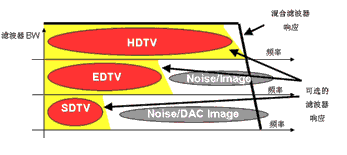 道,又可选择16MHz以支持色差通道,根据模拟信号带宽要求,这都是可行的。不过这也有一个缺点,就是不同滤波器的延迟在相同频率比例下会有差异,如果不通过数字处理加以解决的话,就可能导致计时问题。