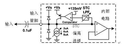 如果DAC的参考电压为3.3V或1.8V或者是外部输入,那么采用AC耦合就是最佳模式。AC耦合使THS73x3能忽略DC偏置点的来源,并能重新建立自己的DC偏置点。AC耦合选项包括AC偏置和AC同步端钳位。