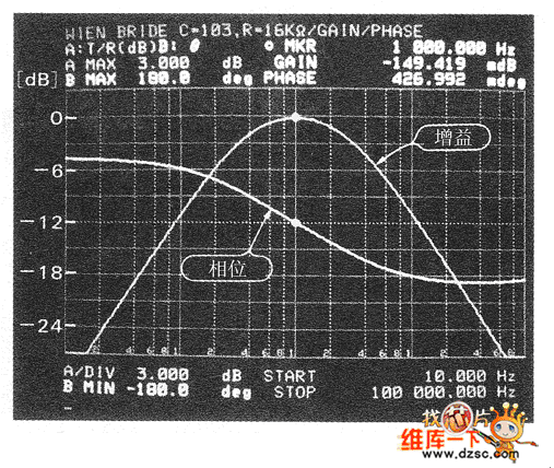 相位特性在fo=1kHz时为0,fIN<fo时相位超前,fIN>fo时相位延迟。所以,应用在特定频率凡处相位为0的特性来形成振荡电路。
