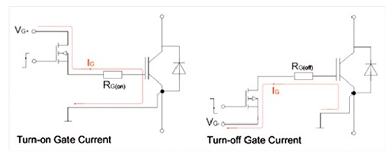 用于控制、调节和开关目的的功率半导体需要更高的电压和更大的电流。功率半导体的开关动作受栅极电容的充放电控制。而栅极电容的充放电通常又受栅极电阻的控制。通过使用典型的+15V控制电压(VG(on)),IGBT导通,负输出电压为-5 …-8…-15V时,IGBT关断。IGBT的动态性能可通过栅极电阻值来调节。栅极电阻影响IGBT的开关时间、开关损耗及各种其他参数,从电磁干扰EMI到电压和电流的变化率。因此栅极电阻必须根据具体应用的参数非常仔细地选择和优化。