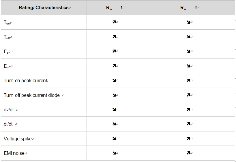 - 测试和衡量最终系统是确定栅极电阻最终最优值的唯一途径,最优的栅极电阻值一般介于IGBT数据表中所列的值和其两倍之间