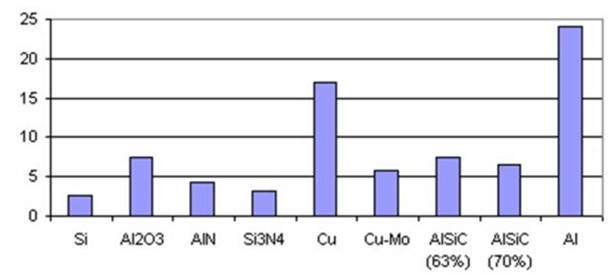 图2:不同材料的热膨胀系数(CTE)(ppm/K)