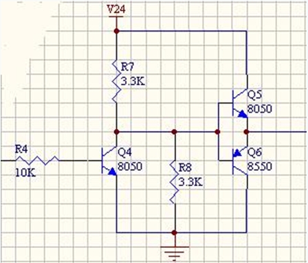 后面三极管和电阻,稳压管组成的电路进一步放大信号,驱动场效应管的栅极并利用场效应管本身的栅极电容(大约1000pF)进行延时,防止H桥上下两臂的场效应管同时导通(“共态导通”)造成电源短路。