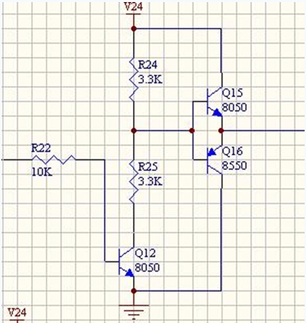 当运放输出端为低电平(约为1V至2V,不能完全达到零)时,下面的三极管截止,场效应管导通。上面的三极管导通,场效应管截止,输出为高电平。当运放输出端为高电平(约为VCC-(1V至2V),不能完全达到VCC)时,下面的三极管导通,场效应管截止。上面的三极管截止,场效应管导通,输出为低电平。