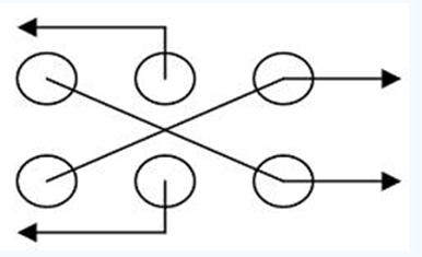 步进电机工作在四相八拍模式(即正转的输入信号为1000→1100→0100→0110→0010→0011→0001→1001→1000),对应每个步进电机要有四个信号输入端,理论上向端口输出信号可以控制两个步进电机的工作。寄存器循环移位奇偶位分别作两个步进电机的驱动端的做法,其思想如下: