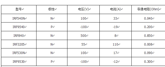 附录:几种IRF场效应管的参数