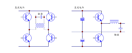3KVA 以上功率的在线式UPS 几乎全部采用IGBT 作为逆变部分的功率器件,常用全桥式电路和半桥电路,如下图4。