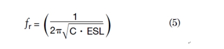 该模型给出了适用于绝大多数表面贴装MLCC的正确阻抗曲线。记住电容值将随温度和直流偏置而变化。等效串联电(ESR)随温度、直流偏置和频率变化,而等效串联电感(ESL)却基本保持不变。对阻抗来说,也许最重要的部分是谐振点,因为这是衰减最大的频率。众所周知,计算谐振频率的公式是: