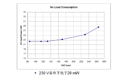 图1:满足五星级充电器标准,230V条件下待机功耗低于26mW