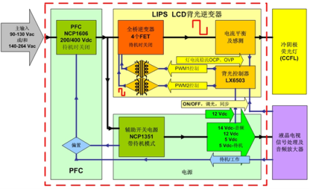 图2:安森美半导体针对32英寸液晶电视的全桥高压LIPS解决方案功能框图。