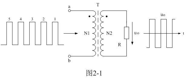 在图2-1中,当有直流脉冲电压输入变压器初级线圈a、b两端时,在变压器初级线圈中就有励磁电流流过,励磁电流会在变压器铁芯中产生磁通