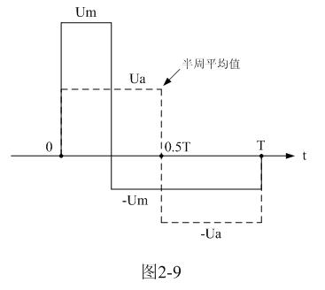 这种计算方法,对于非正弦波同样有效。图2-9是一个正、负脉冲幅度以及脉冲宽度均不相等的交流脉冲波形,我们同样可以用分别计算它们正、负半周平均值Ua、-Ua的方法,然后用平均值Ua替代(2-17)或(2-18)式中的矩形脉冲幅度E 。