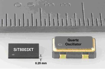 图3 超薄MEMS振荡器与一般石英振荡器的厚度比较示意图