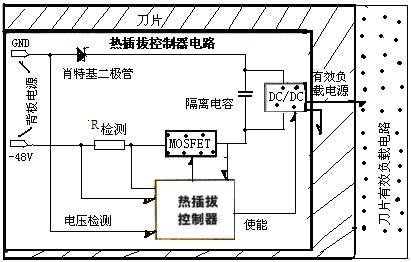 图2为在大功率刀片的-48V中实现的热插拔控制器电路的主要基本架构