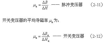 我们在前面(2-11)式和(2-12)式中,已经介绍过脉冲变压器的脉冲导磁率和开关变压器平均导磁率的概念。脉冲变压器的脉冲导磁率