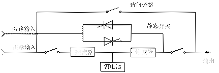 (2)由于没有采用静态开关,交流输入电源故障时,将负载从交流输入电源转换至逆变器所需的转换时间较长,不能满足复杂的灵敏负载的需要。