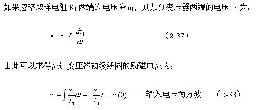 (2-38)式中,e1为加到变压器T2初级线圈两端的电压(这里为方波),或T1变压器次级线圈输出的电压(方波);L1为变压器T2初级线圈的电感,i1(0)为时间等于零时变压器T2初级线圈中的励磁电流。