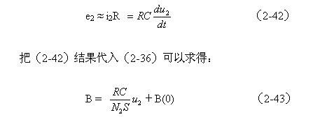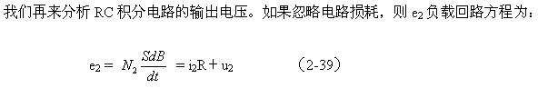 由(2-35)和(2-36)式可以看出,感应电动势是磁通密度对时间的微分,那么磁通密度就应该是感应电动势对时间的积分。因此,对磁通密度B进行显示必须由一个积分电路组成。在图2-15中,RC电路正好有这种积分特性。