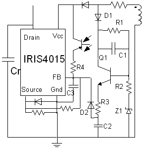 图4由IRIS4015构成的QR/PWM反激式电源电路