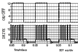 可控脉冲模式,也可称为跳周期控制模式(SkipCycleMode)是指当处于轻载或待机条件时,由周期比PWM控制器时钟周期大的信号控制电路某一环节,使得PWM的输出脉冲周期性的有效或失效,如图6所示。这样即可实现恒定频率下通过减小开关次数,增大占空比来提高轻载和待机的效率。该信号可以加在反馈通道,PWM信号输出通道,PWM芯片的使能引脚(如LM2618,L6565)或者是芯片内部???如NCP1200,FSD200,L6565和TinySwitch系列芯片)。