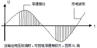 可控硅是一个控制电压的器件,由于可控硅的导通角是可以用电路来控制的,固此随着输出电压Uo的大小变化,可控硅的导通角也随着变化。加在主变压器初级的电压Ui也随之变化。
