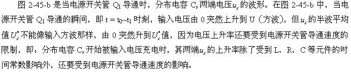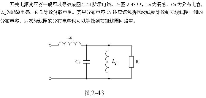 这里顺便指出,图2-45-b的波形是很难测量到的,因为它基本上都在变压器内部的分布电感Ls与分布电容Cs之间产生,但它会通过辐射对周边电路造成干扰。