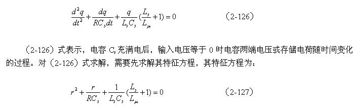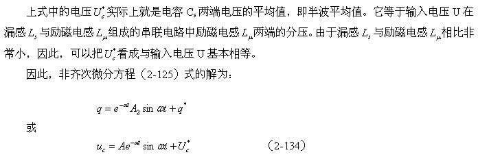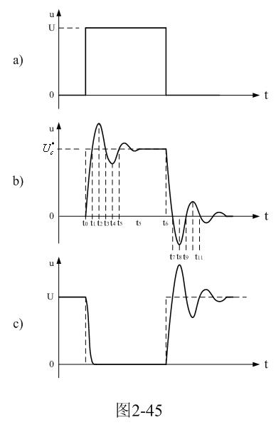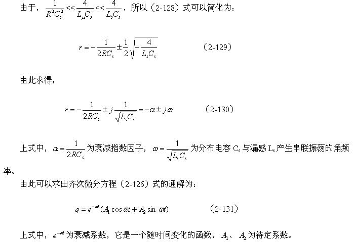 当开关管Q1导通过后,开关管开始关断,相当于输入脉冲电压的上升率为负(脉冲进入反冲阶段),此时,输入脉冲电压的上升率小于串联振荡回路自由振荡电压的上升率,因此,振荡回路又开始再次释放能量,振荡回路再次产生阻尼振荡,如图2-45所示。