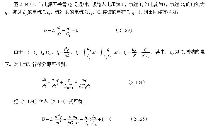 图2-43开关变压器的等效电路与一般变压器的等效电路,虽然看起来基本没有区别,但开关变压器的等效电路一般是不能用稳态电路进行分析的;即:图2-43中的等效负载电阻不是一个固定参数,它会随着开关电源的工作状态不断改变。