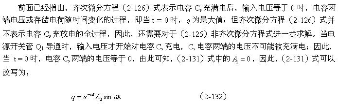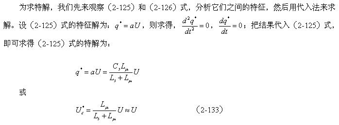 另外,非齐次微分方程(2-125)式的解应该等于齐次微分方程(2-126)式的通解与(2-125)式特解之和。