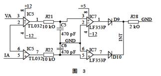 信号检测板部分标准电压和电流的有效值转换电路如图2所示。