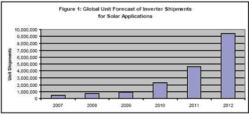 - 2012年全球用于太阳能系统的逆变器出货量将从2008年时的723,329个增长到950万个