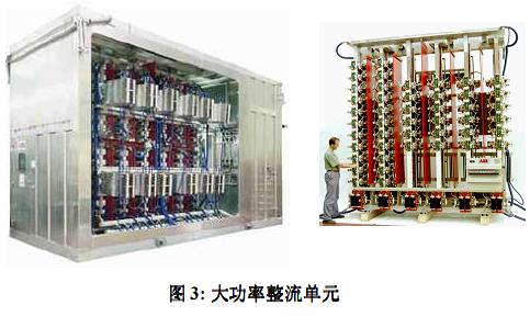 在整流应用中,由于没有再生负载,额定电压选择依据整流器输入线电压。如果与3英寸或4英寸二极管或晶闸管配合使用,可以形成的整流器输出为直流2100V,将可允许在一条生产线上有440只电解槽串联,这等效于每年39万吨铝的生产能力。