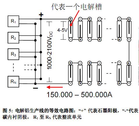 在电解铝工业中,过程电流和串联电解槽数目有逐步扩大的趋势,目前已有系统设计采用350kA电解电流和1600V的直流电压。在不久的将来,高达500kA过程电流的电解铝生产线也将成为现实。