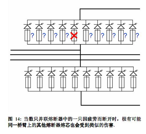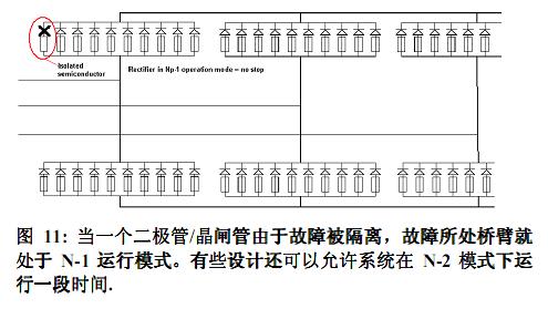整流器中的半导体和快熔的配合需要仔细考虑。一个考虑周全的熔断器保护方案基本不存在半导体爆炸的可能。与之相反,不当的系统设计将会导致燃弧和起火、损坏整个整流器单元、以及操作人员的人身伤害。按照N-1模式设计系统可以?;び没馐苌卟糠只蛉客6俅吹乃鹗?。因此,在大功率整流应用中,都是基于N-1模式的连续满载运行。在某些应用中,客户甚至要求按N-2-或更多来进行设计,这些都要加以考虑。如果整流器在N-x模式下运行了过长的时间,而整流器本不是按照N-x模式来设计的,那么结果就是故障熔断器所在桥臂的所有其他熔断器也受到了伤害。