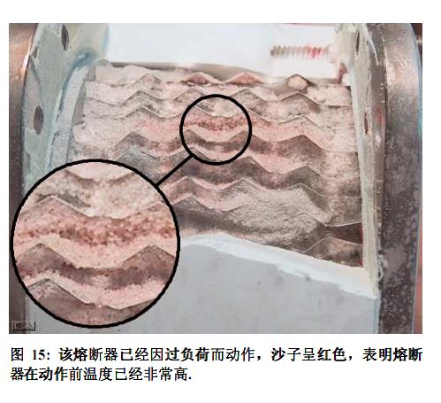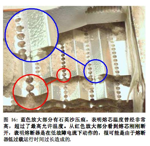 如果熔断器额定电压低于故障系统电压,各狭颈处燃起的电弧将持续燃烧而会合,最终电弧贯穿整个熔断器。此时熔断器的陶瓷管壳将不能承受内部压力而发生剧烈爆炸。所幸人们一般都根据输入电压选择熔断器,此类故障在现场很少发生。另外,如果严格按照IEC标准执行产品测试,10%的安全裕量也消除了系统电压波动带来的隐患。