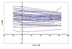 带隙基准源中的电流级存在一定的生产差异(productionvariation),使得25℃时的基准额定值、曲率形状和曲线最平坦部分的位置都会发生各种变化,因此需要进行工厂校准,以尽量减小这种变化的影响,图3所示为一个未校准基准源带来的变化实例。在-20~+85℃的温度范围内,最高差异为-0.9~0.20%。而图3则显示有两个离群点的曲线跟大多数其他器件的曲线有相当大的差异。