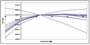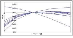 在固定温度下获得良好的测量精度并不困难,若在装配电池组时已对BMU进行了校准便更容易。但实际情况中,电池组通常都会经受各种温度变化,所以温度漂移是区分真正高性能BMU和普通BMU的关键参数。