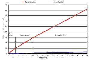 图6所示为32小时内,一个10Ah电池的放电周期,分别是3h/1.5A,7h/0.6A,以及22h/60mA。温度变化为±10℃,使用的是5mΩ的感测电阻。采用带普通校准方法的标准BMU,电荷积聚中的误差大于400mAh,在这个例子中相当于10Ah电池的4%以上。爱特梅尔的解决方案由于采用了整合有专有校准方法的灵活模拟设计,能够大大提高精度?;谡庑└慕蟛羁杀唤抵?0mAh以下,相当于0.2%。