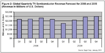 在需求方面,电视厂商在2009年上半年压低库存,为下半年半导体销售增长消除了障碍。