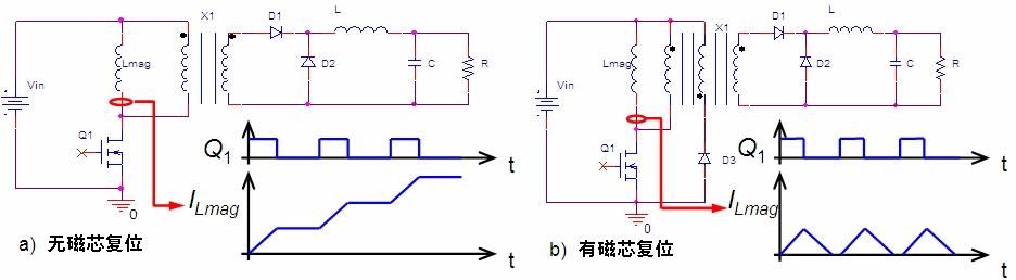 - 比较三次绕组、RCD钳位及双开关正激等常见的磁芯复位技术;